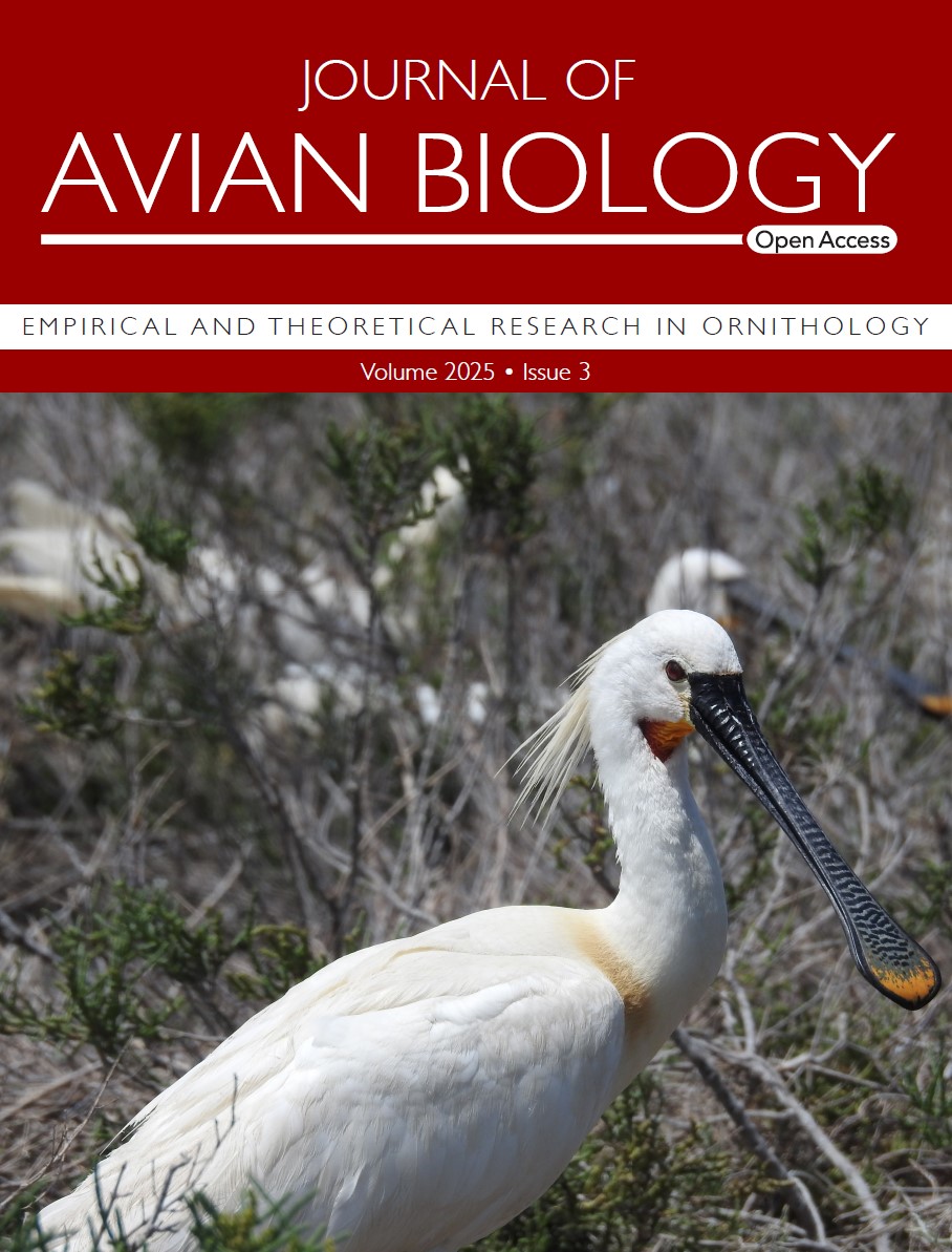 The cover depicts a Eurasian spoonbill Platalea leucorodia featuring the article 'Do older parents do better? Relationships between parental age, chick body condition and migratory behaviour in a colonial-breeding waterbird' by Ferreira et al. Photo credit: Hugo Ferreira.