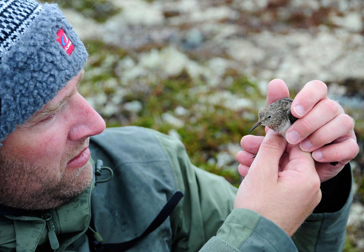 The field work was done at Finse in the mountains of south-central Norway. Each year up to about 30 Temminck’s stint nests could be found in this area which lies at the south-western limit of the species’ global distribution. Located at the foot of a magnificent glacier Finse is best described as a cold and rather hostile alpine landscape. This is especially the case in years when spring thaw is late. During the first part of the breeding season in June skiing is often the best way to move around in the study area.